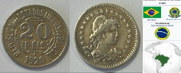 • BRASIL MOEDA ESCASSA DE 20 REIS DO ANO 1920 EM ESTADO BÉLISSIMO DE CONSERVAÇÃO CONFORME A FOTO EXIBIDA