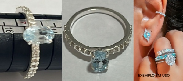 • MEIA ALIANÇA EM ANEL EM PRATA 950  COM  1 GEMA EM AGUA MARINHA  CIRCUNDADA EM ZIRCÔNIA   EM LAPIDAÇÃO OVAL