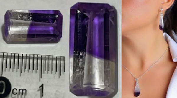 • AMETISTA BI COLOR - LAPIDAÇÃO RETANGULAR MUITO ESCASSA ORIGEM MINAS GERAIS !
