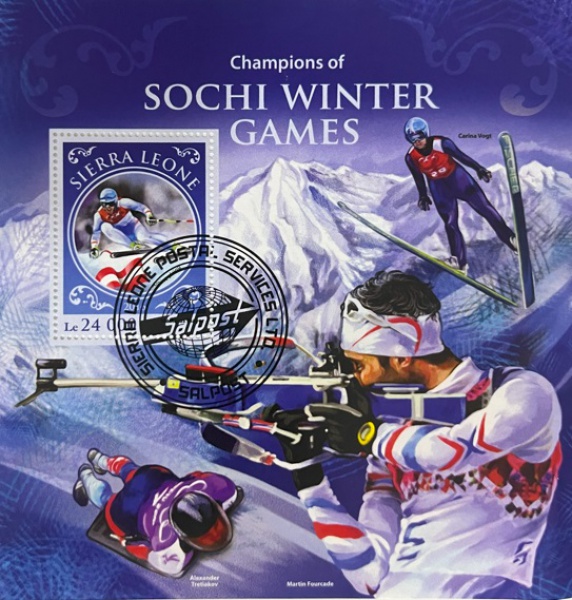 • SERRA LEOA   - BLOCO COM O TEMA ESPORTE OLIMPIADAS DE SOCHI EM ESTADO MINT DE COMSERVAÇÃO