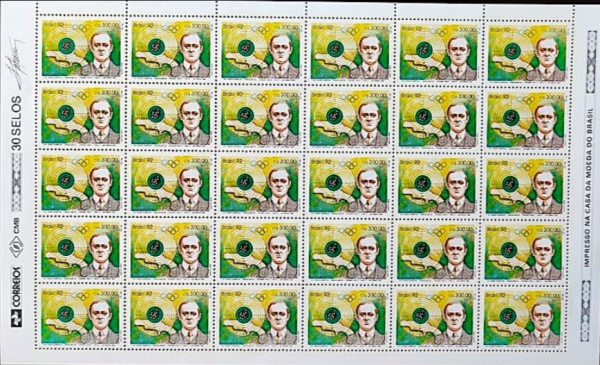 • BRASIL FOLHA COMPLETA DO SELO RHM C 1773 Selo Olimpiadas de Barcelona Espanha Tiro ao Alvo Afranio Costa Esporte 1992