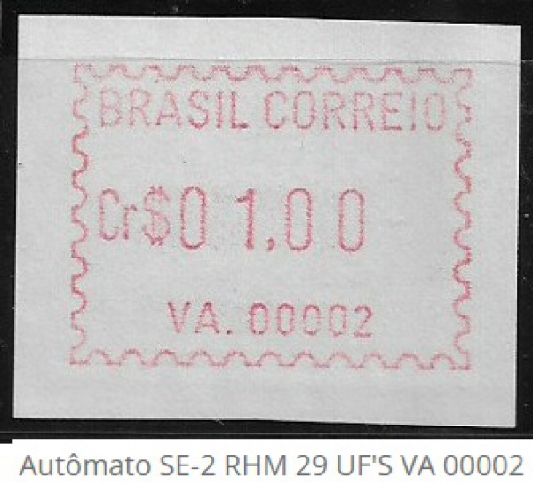 • BRASIL SELO ETIQUETA Autômato SE-2 RHM 29 UF'S OU R$ 145,00 REAIS VA 00002 EM ESTADO MINT DE CONSERVAÇÃO