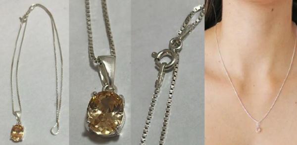 • PINGENTE E CORDÃO EM PRATA 950 COM ZIRCÔNIA EM LAPIDAÇÃO OVAL NA COR CHAMPANHE