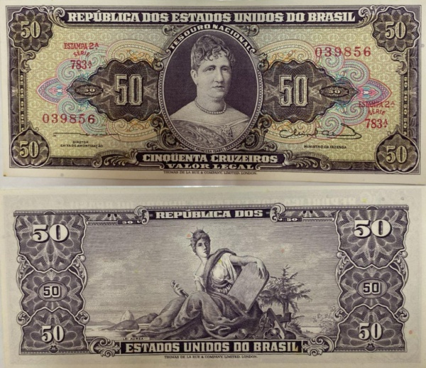 • BRASIL CEDULA DA REPUBLICA DE - 50 Cruzeiros - Princesa Isabel - CAT - C 093 - 2ºEstampa - FLOR DE ESTAMPA  - Estimativa R$60,00