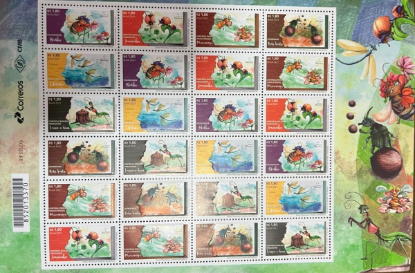 • BRASIL FOLHA COMPLETA  COM HOMENAGEM AOS INSETOS BENÉFICOS  SÉRIE MERCOSUL - DO ANO 2021  JA ESCASSO EM ESTADO MINT DE CONSERVAÇÃO