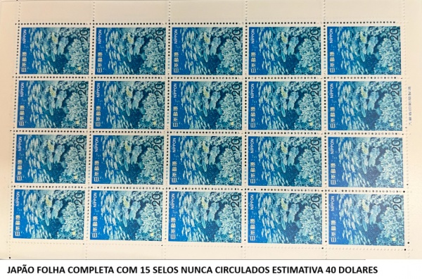 • JAPÃO FOLHA COMPLETA COM 15 SELOS NUNCA CIRCULADOS ESTIMATIVA 40 DOLARES