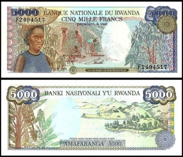 • Rwanda Ruanda - CEDULA EM ESTADO FLOR DE ESTAMPA DE CONSERVAÇÃO DE 5.000 Francs  DO PERIODO 1988-1989