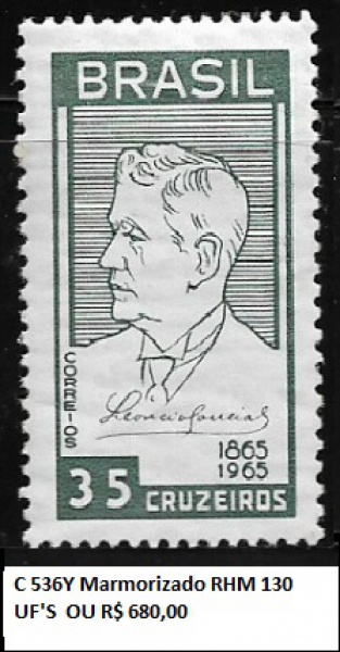 • MARMORIZADO ESCASSO  SELO DO BRASIL RHM C  536Y  VALOR 130 UF'S OU R$ 680,00 ESTADO MINT DE CONSERVAÇÃO