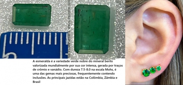 • ESMERALDA - FORMATO LAPIDAÇÃO RETANGULAR  - COR TRANSLUCIDA VERDE - SUA BELEZA É MARAVILHOSA