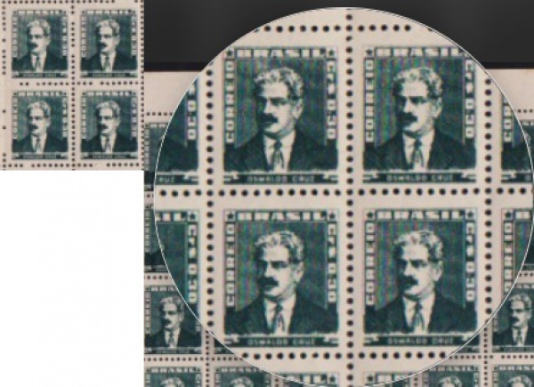 • Brasil 1958 - Oswaldo Cruz, selo em quadra da série Bisneta  sem carimbo com goma