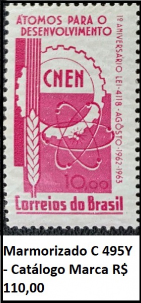 • MARMORIZADO SELO RHM C 495 Y VALOR DE CAT R$ 110 SELO EM ESTADO MINT DE CONSERVAÇÃO