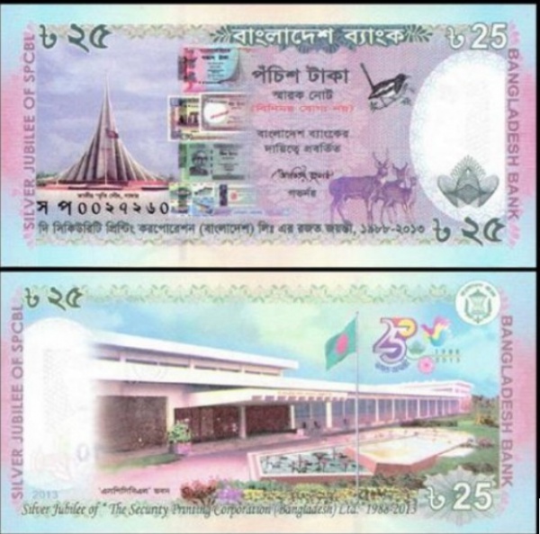 • Bangladesh CEDULA DE  25 Taka COMEMORATIVA EM ESTADO FLOR DE ESTAMPA DE CONSERVAÇÃO !