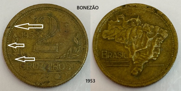 • BRASIL MOEDA DE 2 CRUZEIROS VARIANTE BONÉ  DO ANO 1953  EM ESTADO DE CONSERVAÇÃO CONFORME A FOTO EXIBIDA!!!