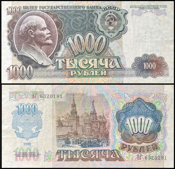 • RUSSIA CEDULA CIRCULADA HOMENAGEM A LENIN DE 1000 RUBLOS ANO 1992 EM ESTADO DE CONSERVAÇÃO SOBERBA  CONFORME A FOTO EXIBIDA
