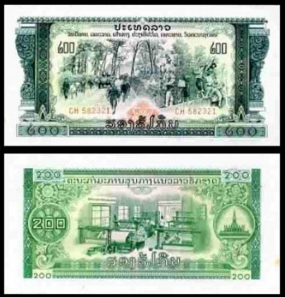 • Lao Laos CEDULA DE  200 Kip DO ANO 1968 em estado flor de estampa de conservação