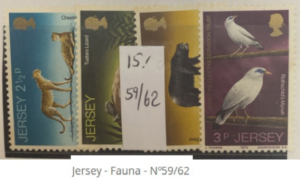 • JERSEY SÉRIE DE SELOS COM O TEMA FAUNA AVES CATÁLOGO 59-62 - Estimativa R$ 35 - ESTADO DE CONSERVAÇÃO CONFORME A FOTO EXIBIDA