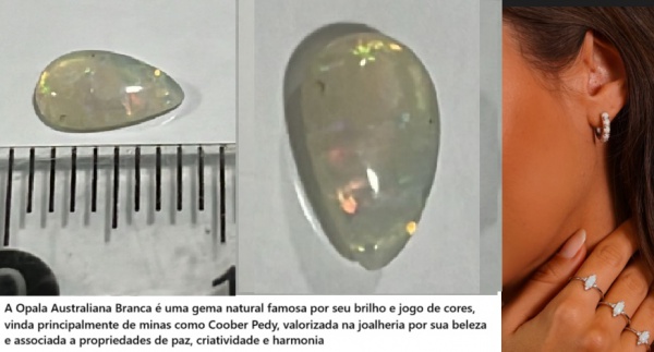 • OPALA AUSTRALIANA BRANCA - GEMA NATURAL ESCASSA E VALIOSA- LAPIDAÇÃO GOTA  MOSTRA VARIOS PONTOS DE LZ COLORIDAS - EXCELENTE PARA JOIAS E DE UMA BELEZA INCRÍVEL