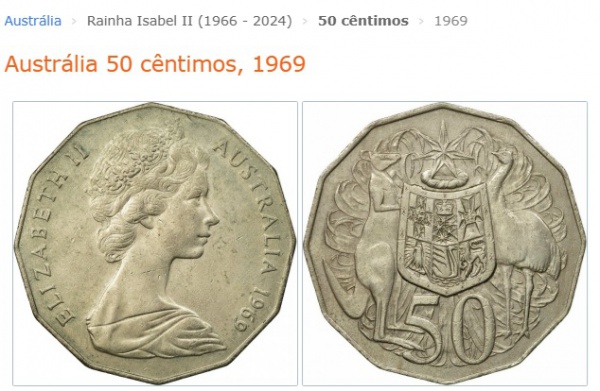 • AUSTRALIA MOEDÃO DE 50 CENTIMOS  DO ANO 1969 - EM ESTADO FLOR DE CUNHO  DE CONSERVAÇÃO !