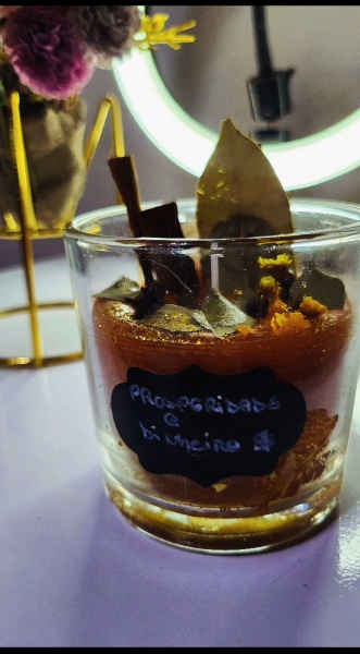 • MARAVILHOSA VELA AROMATIZADA PARA PROSPERIDADE E DINHEIRO COM ESSÊNCIAS FINAS E DECORAÇÕES ESPECIAIS 354G
