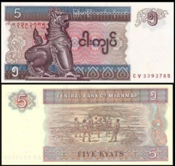 • Myanmar Mianmar CEDULA DE  5  KYATS  DO ANO 1996  EM ESTADO FLOR DE ESTAMPA DE CONSERVAÇÃO