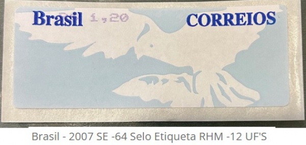 • BRASIL SELO ETIQUETA RHM  SE -64 EM ESTADO MINT DE CNSERVAÇÃO  -12 UF'S OU R$ 60 REAIS