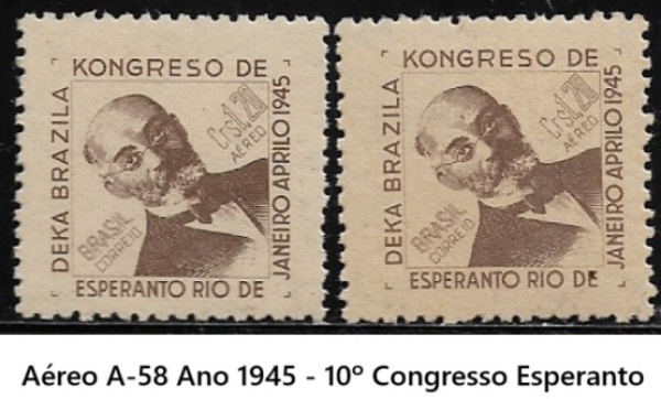 • BRASIL PAR DE SELOS AÉREOS RHM  A-58 Ano 1945 - 10º Congresso Esperanto - ESTADO DE CONSERVAÇÃO CONFORME A FOTO EXIBIDA NUNCA CIRCULADO BÉLISSIMO PAR  !!R