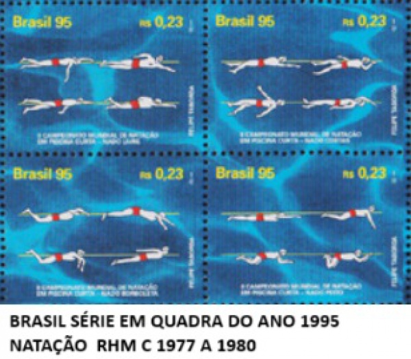 • BRASIL SÉRIE EM QUADRA DO ANO 1995 NATAÇÃO  RHM C 1977 A 1980  EM ESTADO MINT DE CONSERVAÇÃO!