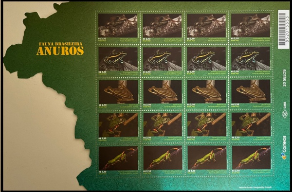 • BRASIL FOLHA COMPLETA EM FORMATO DIFERENCIADO COM 20 SELOS COM O TEMA ANUROS FAUNA BRASILEIRA   EM ESTADO MINT DE CONSERVAÇÃO