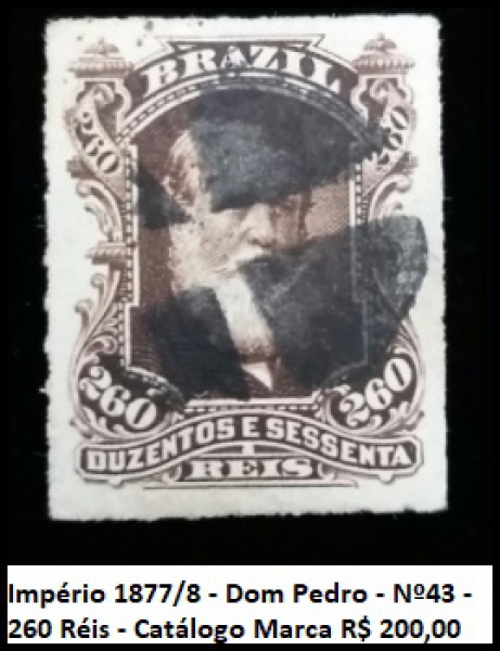 • RARO SELO DO IMPERIO D PEDRO - RHM Nº 43 - VALOR DE CAT R$ 200 -   EM EXCELENTE  ESTADO DE  CONSERVAÇÃO!