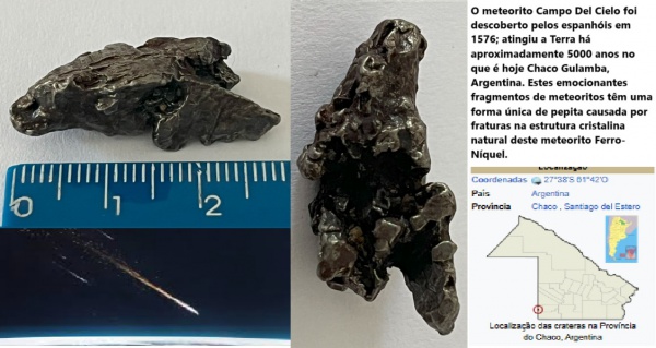 • METEORITO UM PEDAÇO DE UMA ESTRELA ORIGEM CAMPO DE CIELO ARGENTINA BÉLISSIMA E RARO!!