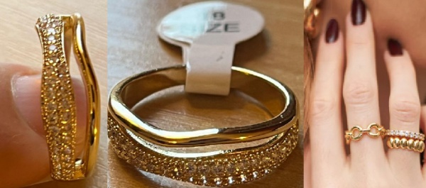 • ANEL DOURADO RICAMENTE TRABALHADO COM ZIRCONIAS COM UM TOQUE LINDO E LUXUOSO
