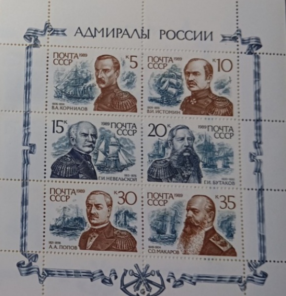 • RUSSIA BLOCO DO ANO 1989 HOMENAGEM AOS SEUS COMANDANTES NAVAIS SÃO 6 ALMIRANTES EM ESTADO MINT DE CONSERVAÇÃO
