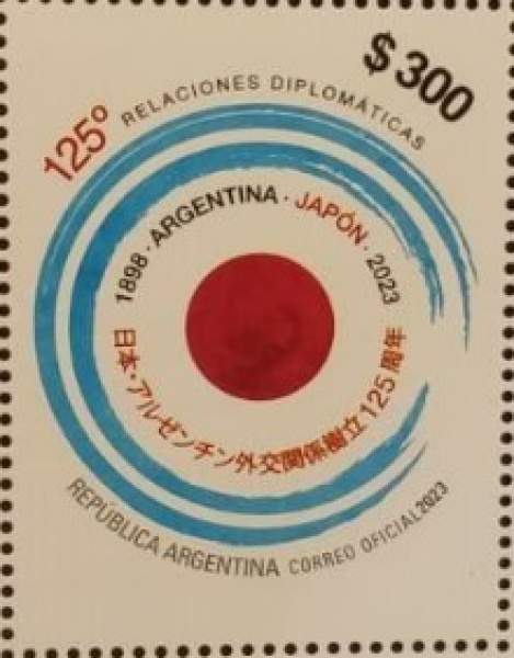 • ARGENTINA SELO DO ANO 2023 COM O TEMA RELAÇOES DIPLOMATICAS ARGENTINA E JAPÃO CONFORME A FOTO EXIBIDA