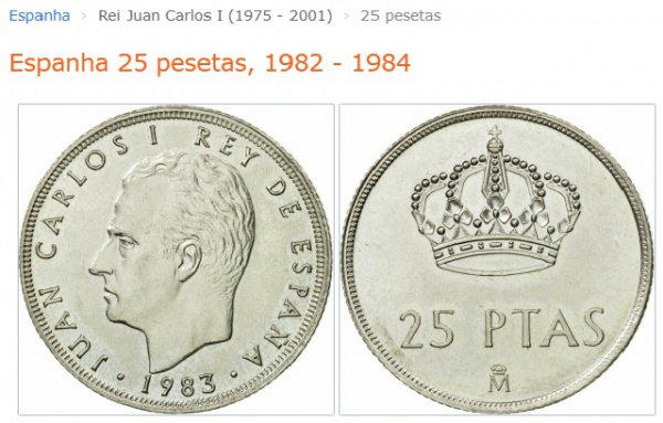 • ESPANHA MOEDA DE 25 PESETAS DO ANO 1983   EM ESTADO FLOR DE CUNHO  DE CONSERVAÇÃO !