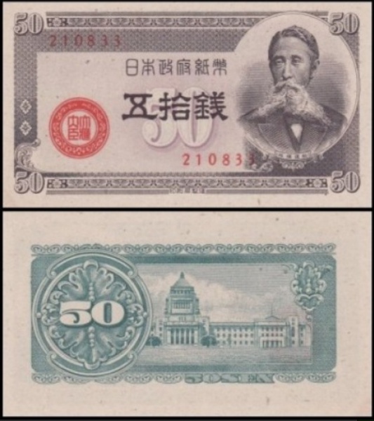 • Japan Japão  CEDULA DE  50 Sen DO ANO 1948 Itagaki Taisuke EM ESTADO FLOR DE ESTAMPA DE CONSERVAÇÃO