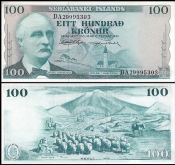 • ISLANDIA  CEDULA DE  100 KRONUR  DO ANO 1961- EM ESTADO FLOR DE ESTAMPA