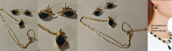 • COLAR E BRINCOS MAGNIFICOS COM  ZIRCONIA ROXA  EM FORMATO GOTA E METAL COM FORMATO ADORNADO MARAVILHOSO EM METAL DOURADO R$ 190