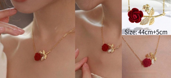 • CORDÃO COM ROSA VERMELHA EM AÇO TITANIUM VERMELHO COM FOLHA COM  ZIRCONIAS INCRUSTRADAS EM CORDÃO DOURADO SENSACIONAL CONFORME A FOTO EXIBIDA