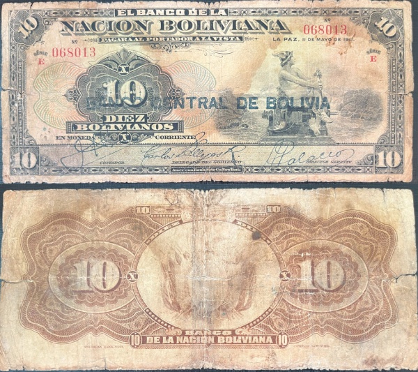 • BOLIVIA - CEDULA DE 10 BOLIVIANOS  DO ANO 1911 CEDULA ESCASSA EM BOM  ESTADO  DE CONSERVAÇÃO!!!