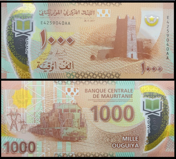 • MAURITANIA  - CEDULA EM POLIMERO EM ESTADO FLOR DE ESTAMPA DE CONSERVAÇÃO DE 1000 OUGUIYA DO ANO 2017
