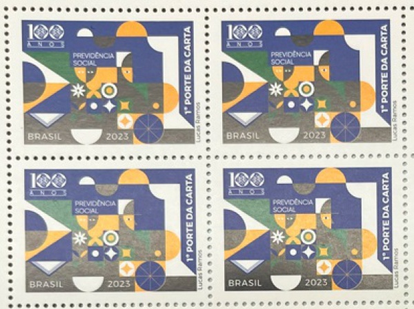 • BRASIL QUADRA DO SELO DO ANO 2023 100 ANOS DA PREVIDENCIA SOCIAL  COM 4 SELOS  EM ESTADO MINT DE CONSERVAÇÃO