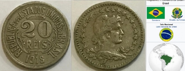 • BRASIL MOEDA DE 20 RÉIS ESCASSA DO ANO 1918 - ESTADO DE CONSERVAÇÃO CONFORME A FOTO EXIBIDA