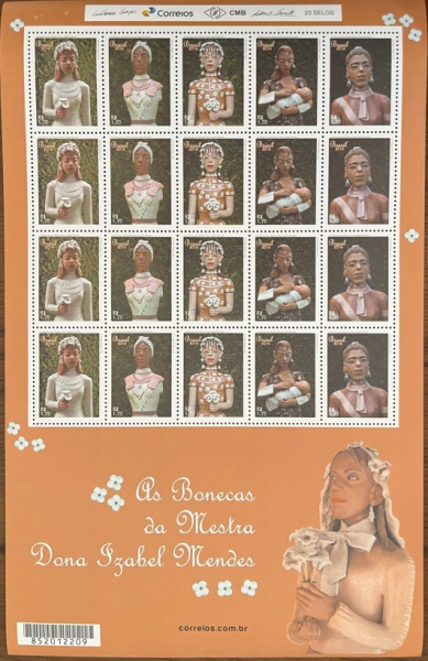 • BRASIL BLOCO COM HOMENAGEM AO TEMA BONECAS  DA MESTRA  DONA IZABEL MENDES  BLOCO DO ANO 2020  JA ESCASSO EM ESTADO MINT DE CONSERVAÇÃO