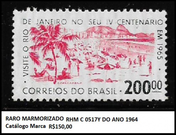 • RARO MARMORIZADO RHM C 0517Y do Ano 1964 VALOR DE CATÁLOGO R$ 150  - SELO EM ESTADO MINT DE COSERVAÇÃO