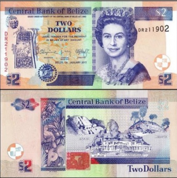 • Belize CEDULA DE  2 Dollars DO ANO 2017 SERIE RAINHAS -  EM ESTADO FLOR DE ESTAMPA DE CONSERVAÇÃO