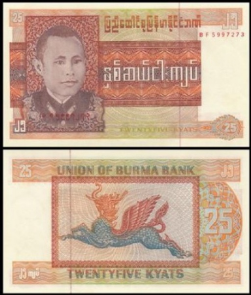 • Burma Birmânia CEDULA DE  25 Kyats DO ANO 1972 TAMANHO GRANDE  EM ESTADO FLOR DE ESTAMPA DA CONSERVAÇÃO