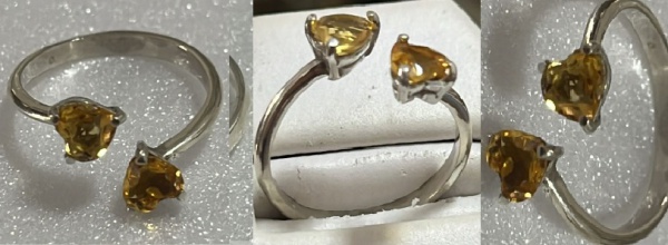 • ANEL EM PRATA 950 MARAVILHOSO COM PEDRA TOPAZIO IMPERIAL DUPLO CORAÇÃO   EXTRA LUXO  NATURAIS TOTALMENTE AJUSTAVEL  BÉLISSIMOS