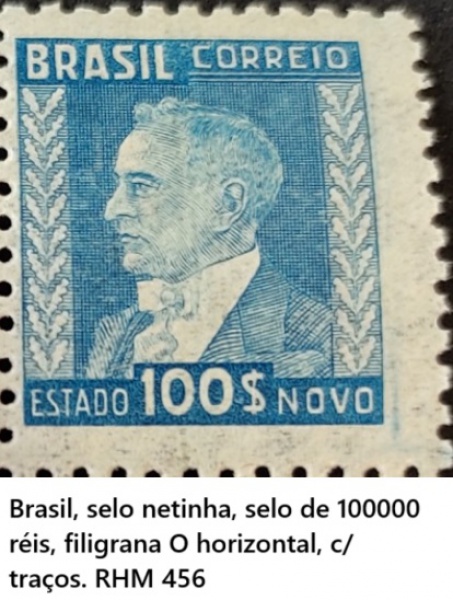 • Brasil, selo netinha, com variante deslocamento de picote acentuado com  filigrana O horizontal, com traços. RHM 456  MINT DE CONSERVAÇÃO