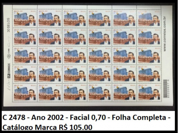 • BRASIL - FOLHA COMPLETA DO ANO 2002 RHM C 2478 V CAT  R$ 105 - FOLHA EM ESTADO MINT DE CONSERVAÇÃO