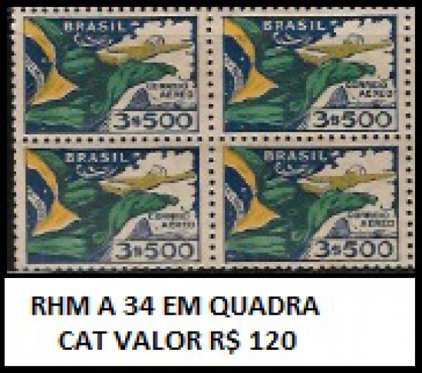 • QUADRA DE SELO AÉREO ESCASSO RHM A 34 VALOR DE CAT R$ 120 - SELOS EM BELISSIMO ESTADO DE CONSERVAÇÃO